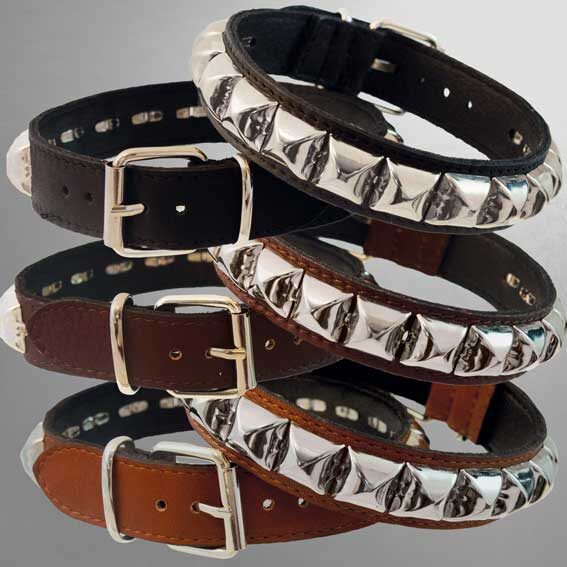 Schuhgürtel mit 1,5cm-Pyramiden aus Sauvage-Leder, Made in Italy, handgefertigt. Kann als Stiefelband, Halsband oder Armband getragen werden. Durch die Gürtelschließe variabel in der Länge einstellbar.