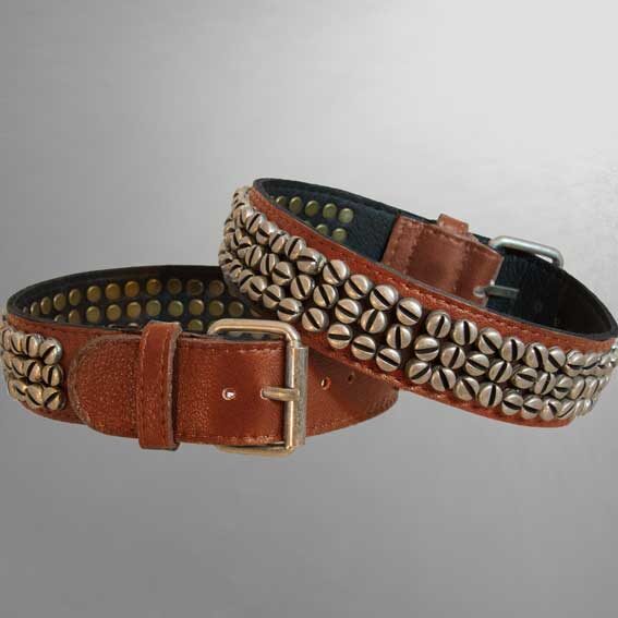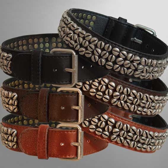 Dieses Modell wurde exklusiv für sognato designed und produziert! Schuhgürtel mit 3 Reihen Schraubenkopf-Nieten (Ø 7mm) aus Sauvage-Leder, handgefertigt. Kann als Stiefelband, Halsband oder Armband getragen werden. Durch die Gürtelschließe variabel in der Länge einstellbar.