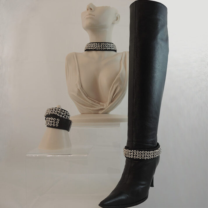 Dieses Modell wurde exklusiv für sognato designed und produziert! Schuhgürtel mit 3 Reihen Schraubenkopf-Nieten (Ø 7mm) aus Sauvage-Leder, handgefertigt. Kann als Stiefelband, Halsband oder Armband getragen werden. Durch die Gürtelschließe variabel in der Länge einstellbar.