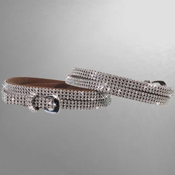 Schuh-Gürtel als Glamour-Accessoire. Wickelband aus Mikrofaser. Kann als Stiefelband, Halsband oder Armband getragen werden. 3 Reihen hochwertiger Kristall-Strass mit BLING!-Faktor. Durch Gürtelschließe variabel in der Länge einstellbar.